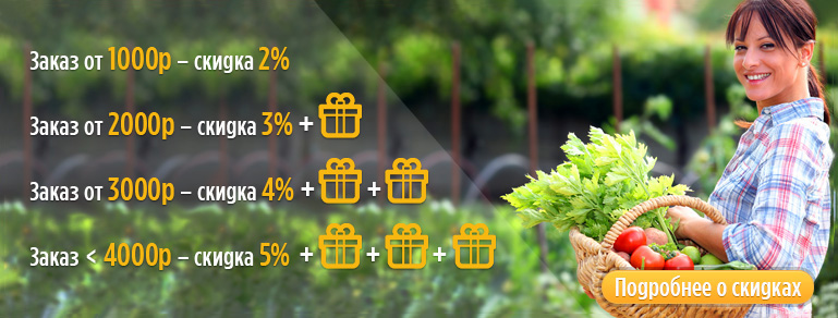 Кроме семян, у нас вы можете купить укрывной материал, удобрения, чехлы для растений, мицелий грибов, средства для септика и другие полезные товары для садоводства. Возможна доставка курьером по Москве и области, отправка заказов почтой.