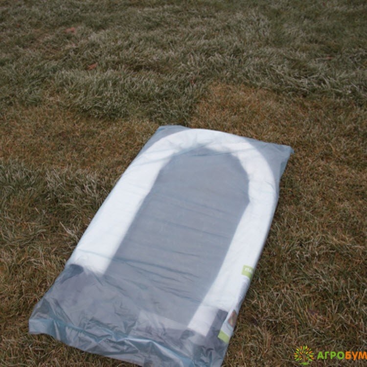 Выберете и расчистите место установки. Далее нужно вставить поочередно дуги в землю и накрыть его укрывным материалом.